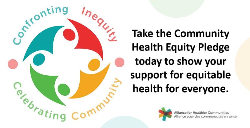 [We/I] pledge to support equitable health for everyone by working closely with community partners to #ConfrontInequity in policies, procedures and resourcing. #CelebrateCommunity #HealthEquity #ONpoli