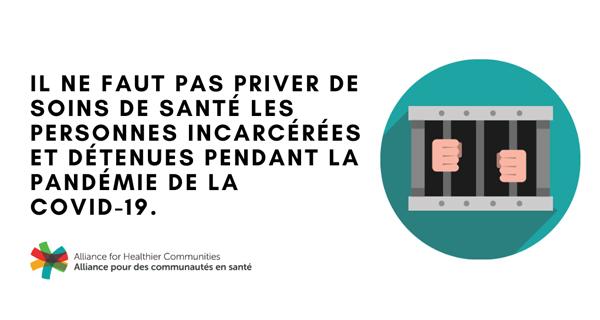 Les organismes communautaires de soins de santé fournissent des soins primaires à des gens de partout dans la province qui ont des démêlés avec la justice. Nos organismes sont très conscients que les personnes incarcérées ont un risque élevé de contracter la COVID-19 étant donné le surpeuplement des établissements correctionnels qui rend inévitables les contacts proches. Les personnes incarcérées n’ont pas accès « sur demande » à des ressources de prévention comme la population en général. Ces facteurs accroissent la susceptibilité de contracter la COVID-19. Compte tenu de ce contexte, les organismes communautaires de la santé ont accueilli favorablement les mesures prises pour accélérer la libération des individus admissibles. Pour la sécurité de cette population et de celle de l’ensemble de la population de l’Ontario, il faut offrir des ressources adéquates et des soins de santé complets aux personnes récemment libérées dans la lutte contre la COVID-19.