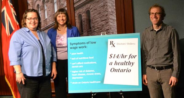 « Le revenu est le déterminant le plus important de la santé. Augmenter le salaire minimum pour sortir les gens de la pauvreté est une bonne chose pour la population de la province. C'est également une bonne chose pour notre système de santé », a ajouté Adrianna Tetley. Une étude économique réalisée en 2008 pour le compte des banques alimentaires de l'Ontario a constaté que si les 20 % des travailleurs les plus pauvres de l'Ontario gagnaient autant que ceux de l'échelon supérieur sur l'échelle des revenus, les économies pour le système de santé de l'Ontario s'élèveraient à 2,9 milliards de dollars.